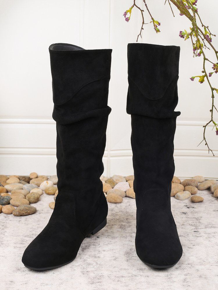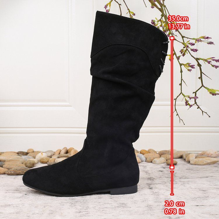 Product information: Pattern: Solid color Lining material: Mesh fabric Color: Black, khaki Heel height: Low heel (1–3 cm) Shaft height: Mid-calf Heel shape: Chunky heel Size: 36, 37, 38, 39, 40, 41, 42, 43 Outsole material: Rubber Trendy element: Other Toe shape: Round toe Upper material: PU Gender: Women Age group: Adult Suitable season: Autumn Style: European and American
